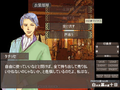 아시는 바와 같이, 바일은 굉장히 왕도라고 할까, 스트레이트하게 갔네요. 가장 처음 정한 엔딩이기도 하고, 솔직히 말하자면 이야기의 센터 역할이기도 하고. 상식적으로 진행되는 흐름. 하지만 함정이 몇 군데 설치돼 있죠. 인상도라는 시스템을 이용한, 나아가면 플레이어의 호기심을 이용한 장치가. 그걸 지나치지 못하신 분들은 꽤 인상깊은 전개를 목격하시지 않았을까요.