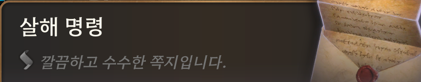 아르퍼, 아직도 펠로기어의 폭죽 상점에 있는 소포를 안 찾아갔더군. 이번에도 늦는다면, 우린 네가 스스로 주장했던 것만큼 열성적인 건지 고민해 봐야 할 것 같다. 소포를 찾거든 곰 인형에 넣고, 인형을 기증해라. 간단한 일이잖아. 내일 이 시간에도 소포가 여기에 있다면, 그 내용물을 네 몸에 넣어주겠어. 알겠지만 물건은 얼마든지 있거든.