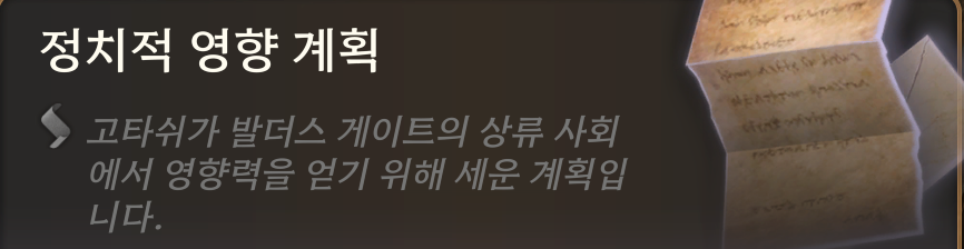 고타쉬: 마침내 엘더 브레인의 통제에서 벗어날 수 있을 만큼 먼 발더스 게이트로 임무를 부여받을 때까지?
