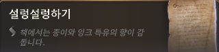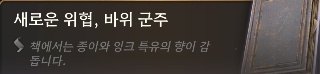 -데리스가 쿵쾅대면서 온 사방을 돌아다니는데 이 빌어먹을 물약을 대체 어떻게 만들라는 건지. 소가 머리를 쿵쿵 밟고 지나가는 것 같다. 누가 돈이라도 주고 시켰나.